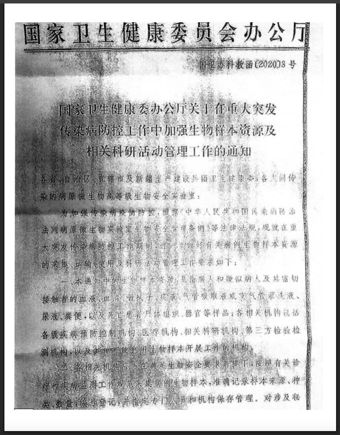 In fact, Beijing issued an official directive forbidding the sharing of any samples and ordering the destruction of those samples.