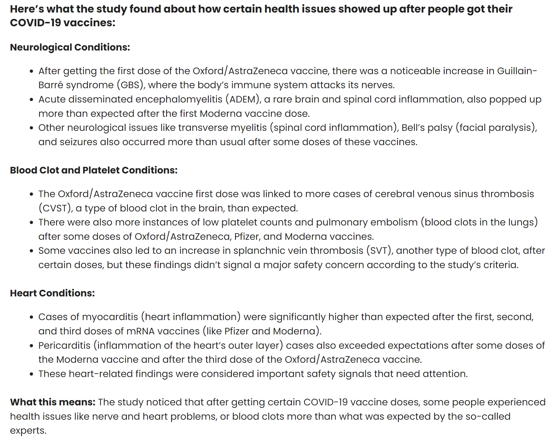 - ‘The study found that about 31.2 percent of vaccinated individuals developed post-vaccination neurological complications, particularly among those injected with the AstraZeneca jab. Different vaccines had a different ‘neurological risk profile’.’