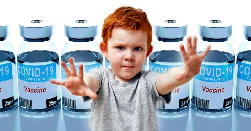 “It is unethical + unconscionable to administer an experimental vaccine to a child who has a near-zero risk of dying from COVID-19 (IFR, 0.0003%) but a well-established 2.2% risk of permanent heart damage based on the best prospective data available.”