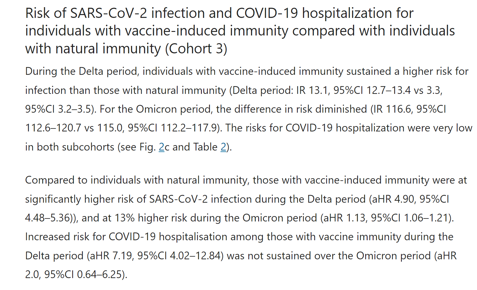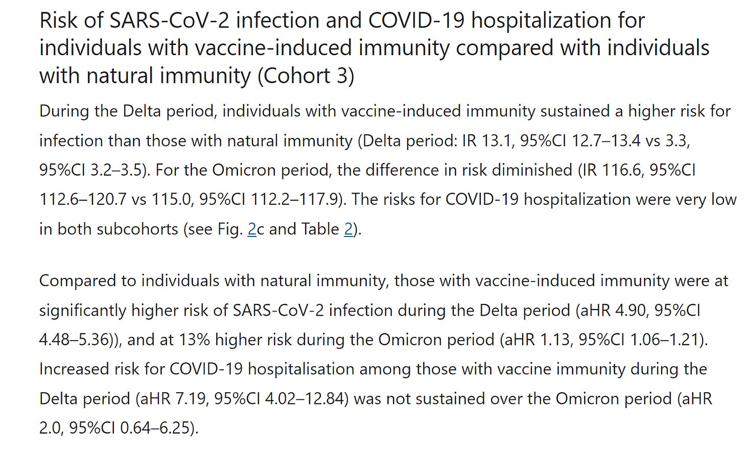 - Two times as likely to be admitted to a hospital during the Omicron period, when compared with the naturally immune.