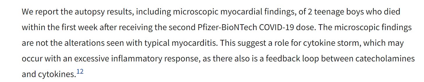 ‘Dr. James Gill, led autopsies on two boys who died in their sleep after administration of the COVID-19 Pfizer vaccines. He concluded that the boys did not suffer from typical myocarditis but rather something that resembled cardiomyopathy caused by toxic stress.’