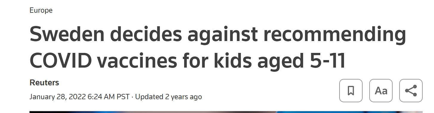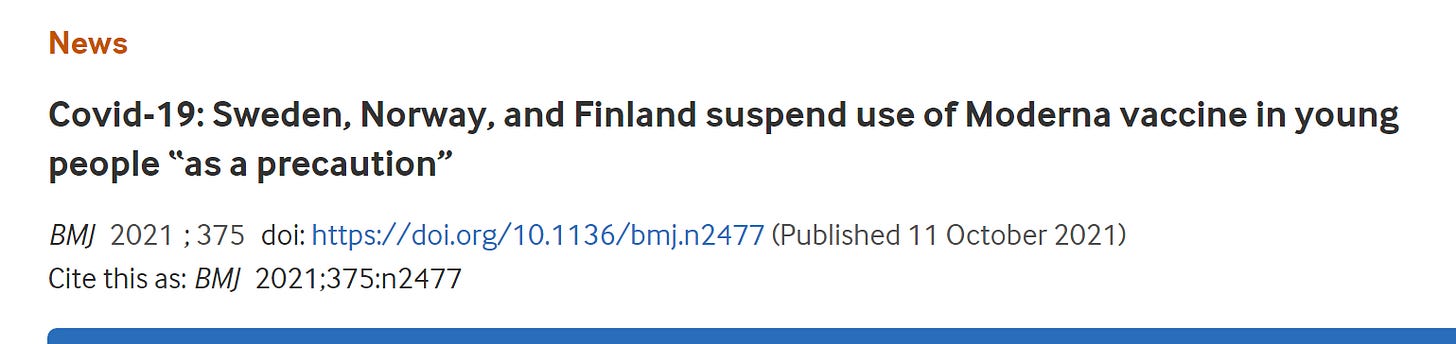 Many governments including those of the United Kingdom, Denmark, Sweden, Norway, and Finland have at various points, suspended their recommendations for child Covid-19 vaccinations. This is an ever changing dynamic and pauses and recommendations affect different age groups and various brands of vaccine – but at the end of the day – there are enough safety signals that cause recommendations to change rapidly and that is concerning.