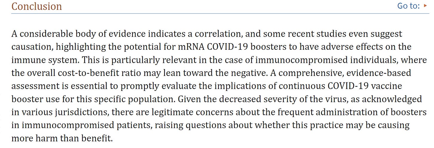 Conclusion from Study: IgG4 Antibodies Induced by Repeated Vaccination May Generate Immune Tolerance to the SARS-CoV-2 Spike Protein (published May 17, 2023):