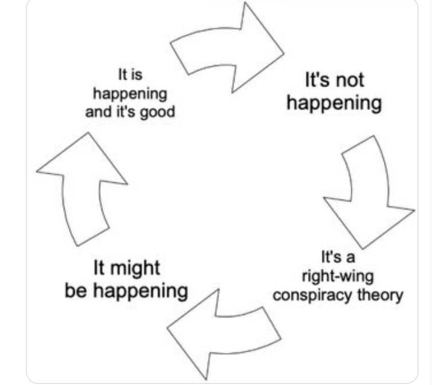 Roberts responded: “A lot of us were told if you think this you’re crazy, you’re a tin foil hat conspiracy theorist but a lot of it turned out to be true so we’ll see how this goes.”