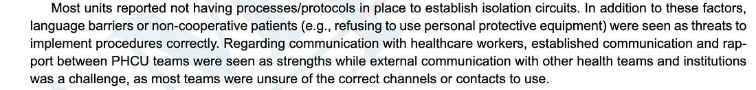 “[L]anguage barriers or non-cooperative patients (e.g., refusing to use personal protective equipment) were seen as threats to implement procedures correctly.”