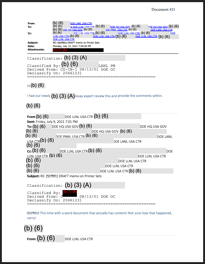 At the center of the release is a classified internal communication titled “DRAFT memo on Primer Sets,” circulated through the DOE’s Office of Intelligence and Counterintelligence and reviewed by assay experts at Lawrence Livermore National Laboratory, Los Alamos National Laboratory, and Pacific Northwest National Laboratory.