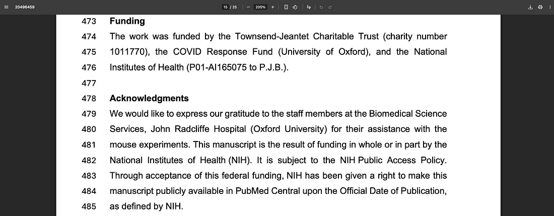 A December 2025 bioRxiv preprint confirms the work, supported in part by the National Institutes of Health (NIH)—an agency within the U.S. Department of Health and Human Services (HHS)—was funded under grant P01-AI165075: